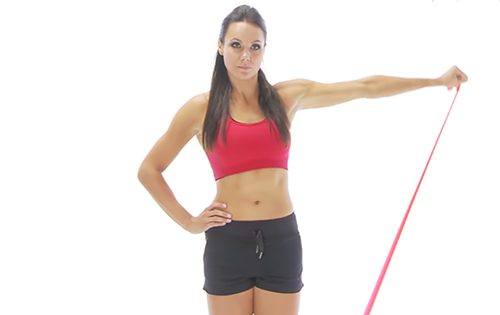 - Note you will have to turn yourself around to apply resistance to the exercise so that you are pulling the band from your side, across your body